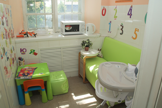В ній знаходитиметься все необхідне для потреб батьків і дітей: мікрохвильова піч, електричний чайник, дитячий стільчик для годування, комфортний диванчик для грудного вигодовування чи інших потреб батьків, невеличка ігрова та розвиваюча зони. Окрім цього, є й санітарна зона, де можна скористатися туалетом, помити руки або змінити дитині підгузок.