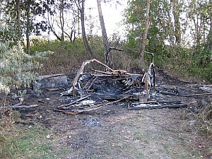 Ночью 9-го сентября слева от Пешеходного моста через Десну полыхало. Имущество предпринимателя, на протяжении летнего периода занимавшегося организацией городского пляжа, сгорело, не дождавшись приезда спасателей. От металлического кунга, палатки для продажи пива и детской горки «Каскад» осталась только куча золы. Вероятной причиной пожара спасатели назвали поджог. Милиция проводит расследование и устанавливает виновных лиц. Но в этой грустной истории нас больше всего интересовал вопрос: «Неужели пляжная эпопея на левом берегу Десны закончилась столь плачевно?»