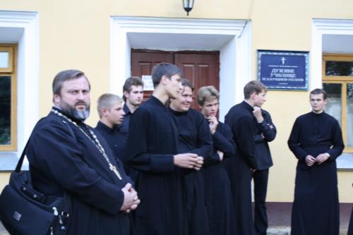На вході в духовне училище вишикувались студенти-семінаристи в підрясниках, яким очевидно був даний наказ пускати тільки тих, кого знають. На запитання, - чому на прес-конференцію не пускають решту людей (мене, до речі, також спочатку не хотіли пропустити, незважаючи на посвідчення кореспондента), студенти, що виконували роль охоронців, відповіли, що потрібна відповідна акредитація від прес-секретаря єпархіального управління, хоча в прес-релізах, які розсилалися за декілька годин до прес-конференції, на це не було жодного натяку. Тим більше, у статті 26 Закону України «Про друковані засоби масової інформації (пресу) в Україні» та статті 10 Закону України «Про інформацію» чітко написано про те, що «журналіст має право на отримання будь-якої незасекреченої інформації, необхідної йому для виконання його службових обов’язків».