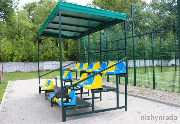 Також ведуться роботи з благоустрою та облаштування території навколо нового мініфутбольного поля та поля для пляжних видів спорту. Для глядачів біля цих двох майданчиків встановили чотири глядацькі трибуни, які розраховані на вісімдесят вболівальників.