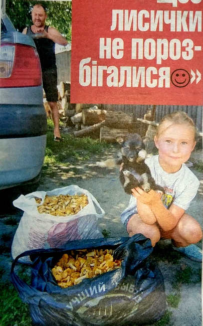 Мирослава та Малиш поряд із лисичками. На задньому плані — Геннадій Назаров