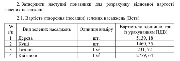 «Если надо будет в центральной части города удалить здоровое дерево, то его восстановительная стоимость теперь составит более 20 000 гривен. Кроме того, Чернигову нужно принять городскую программу, которая будет регламентировать высадки необходимого количества зеленых насаждений по городу, учитывая и человеческие возможности, и временные промежутки».