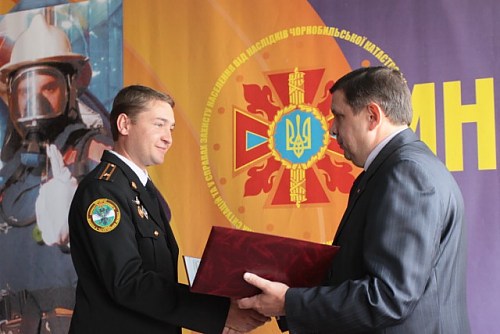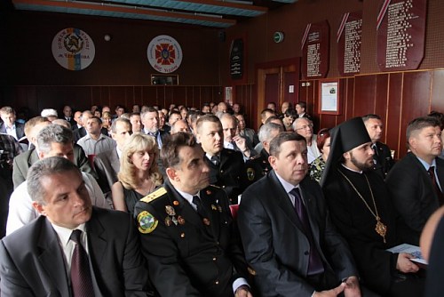 «Вам випала честь носити високе ім’я рятівника. Сумлінним ставленням до цієї відповідальної роботи ви доводите, що достойні цієї честі. У народі високо цінуються ваша постійна готовність до найсуворіших випробувань, ваші самовідданість, мужність і героїзм, які ви проявляєте під час ліквідації пожеж, надзвичайних ситуацій техногенного або природного характеру, при рятуванні життя і майна людей. Відновлюючи за екстремальних умов життєдіяльність населених пунктів і підприємств, рятуючи потерпілих і забезпечуючи жителям області нормальні умови життя, ви повертаєте людям надію і віру в добро», - звернувся до присутніх Володимир Хоменко.