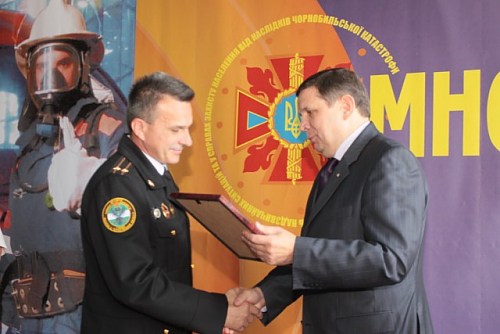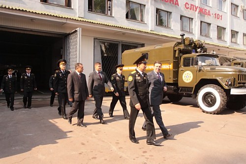 Голова облдержадміністрації Володимир Хоменко та начальник ГУ МНС України в області Віктор Джунь оглянули приміщення частин спеціальної техніки. Присутні також вшанували хвилиною мовчання пам'ять загиблих працівників МНС.