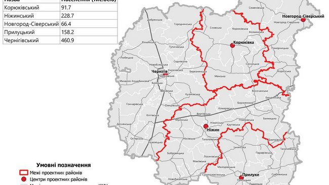 На Чернігівщині утворять 5 районів із центрами у Чернігові, Ніжині, Прилуках, Новгороді-Сіверському та Корюківці.