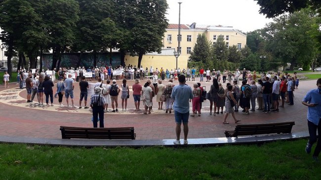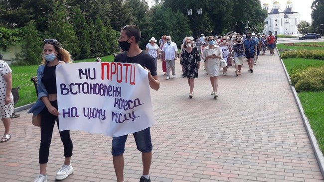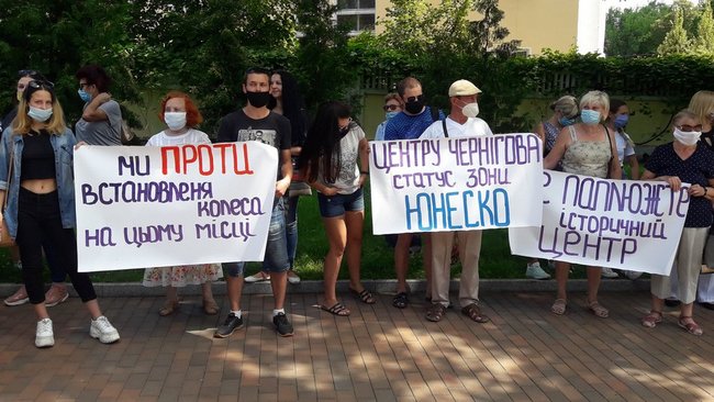 Акція протесту проти встановлення на Алеї Героїв колеса огляду пройшла сьогодні, 18 липня, у Чернігові.