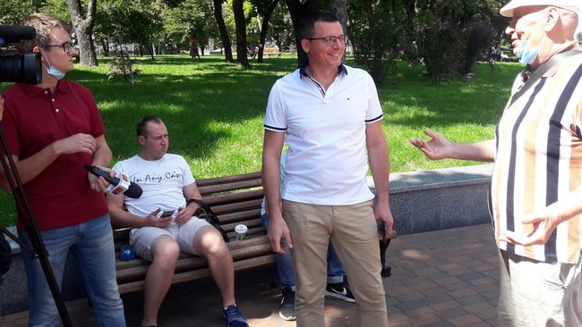 Прийшов на акцію і бізнесмен Юрій Тарасовець, якого називають одним із кандидатів на посаду міського голови Чернігова.