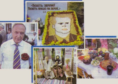 Кроме пищи телесной, широко была представлена и, так сказать, пища духовная — разнообразные художественные изделия народных умельцев Сосниччины. Поражало количество портретов Александра Довженко, с любовью выполненных самодеятельными художниками. Если бы их выставить на конкурс, то первое место наверняка досталось бы портрету, созданному умельцами из Сосницкого сельскохозяйственного техникума бухгалтерского учета из цветов и...зерна!