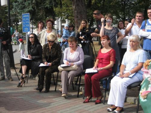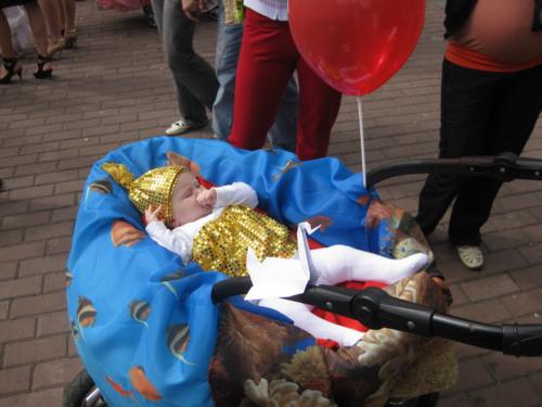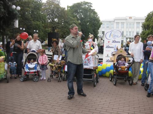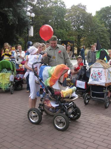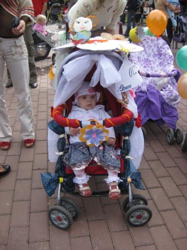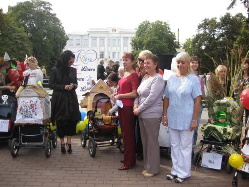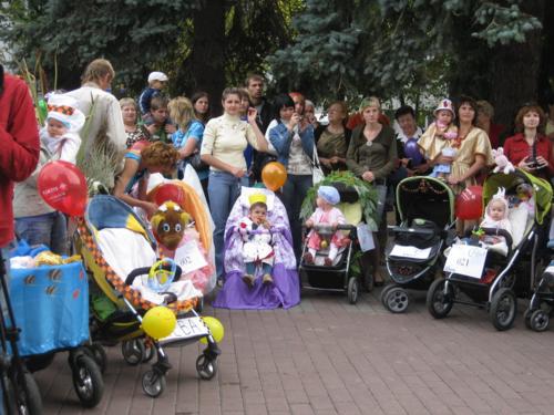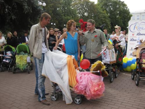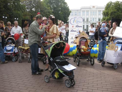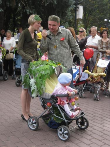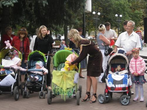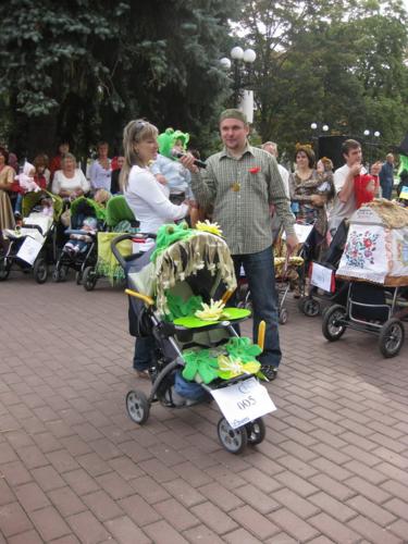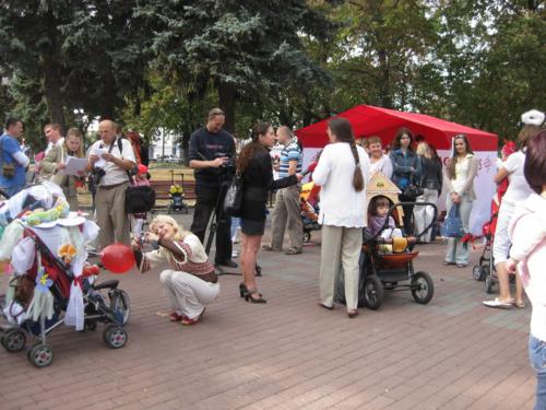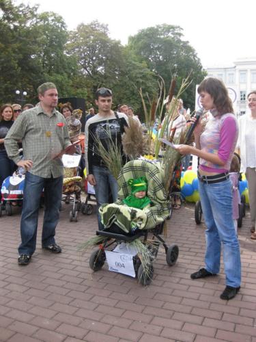 Тут було проведено декілька конкурсів та розіграшів призі, а найголовніше – відбувся конкурс на найкраще прикрашену коляску. У журі сиділи представники від спонсорів та чарівна заступниця мера Чернігова Оксана Тунік-Фриз. Після урочистого параду навколо музичного фонтану вони й винесли рішення, що перше місце здобула коляска "квіткова поляна". Власниця маленька дівчинка, що мило посміхалася в об’єктиви фото- та відеокамер, і отримала головний приз – сертифікат на 300 гривень для здійснення покупок в магазині дитячих товарів. А друге місце зайняла коляска стилізована під будиночок.