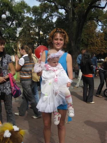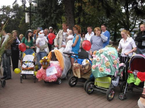 Дитячі коляски, прикрашені деталями з підручних матеріалів та стилізовані під кораблі, будиночки і просто виконані у стилі осінніх композицій, а поруч з ними - сімейні пари, вагітні жінки, бабусі з дідусями. На обличчі кожного радісний вираз. Все це - справжнє свято добра та радості - відбулося сьогодні, 18 вересня, у парку імені Попудренка, поблизу музичного фонтана.