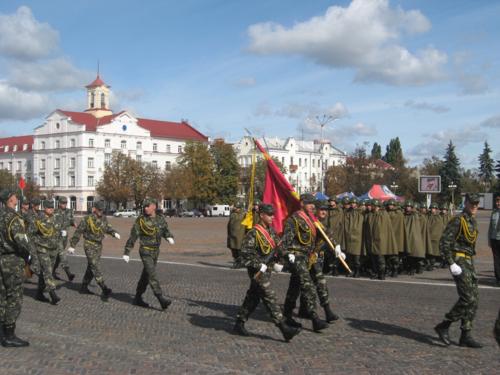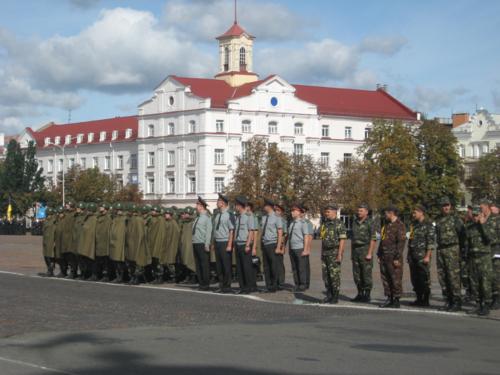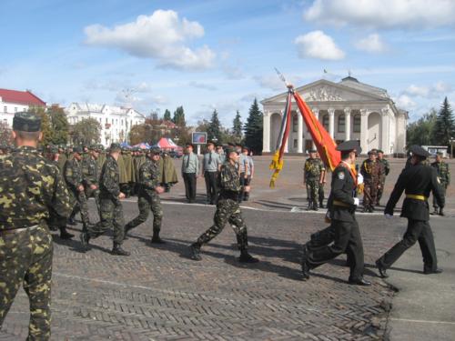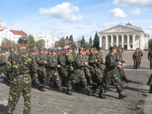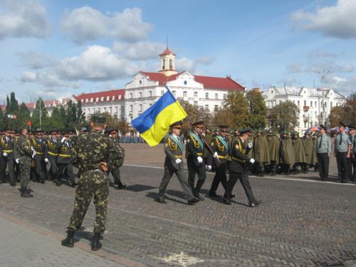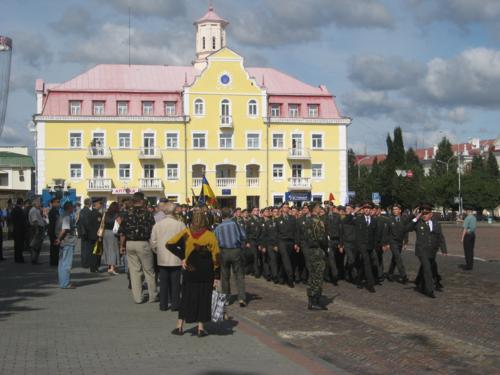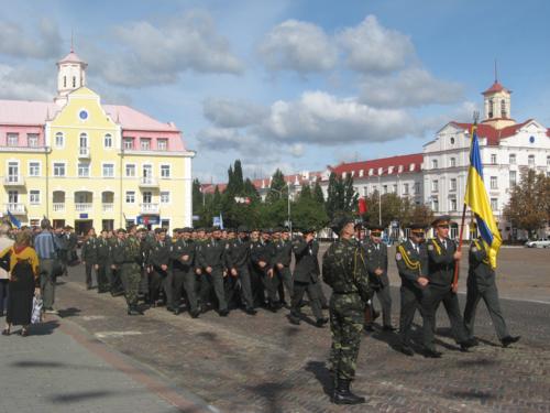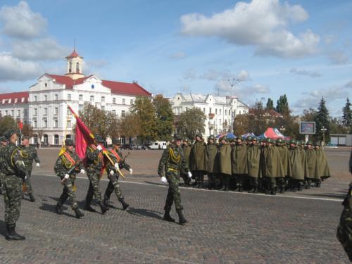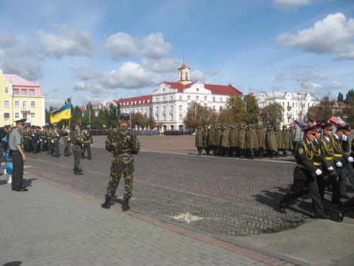 Колони військових крокують головною площею обласного центру та віддають честь командирам. Так вони готують до Дня міста. Пройшли ніби непогано. Та все ж час для підготовки у них таки ще залишається – парад має відбутися в понеділок, 21вересня.