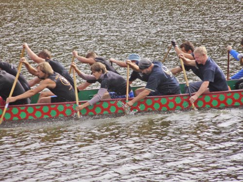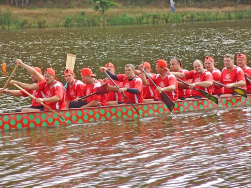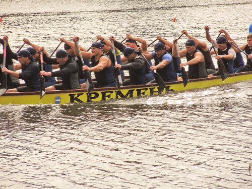 Широкоплечие ребята в разноцветных костюмах, красивые спортивные лодки, стук эксклюзивных барабанов. Все это можно было видеть и слышать в воскресенье на речке Стрижень.