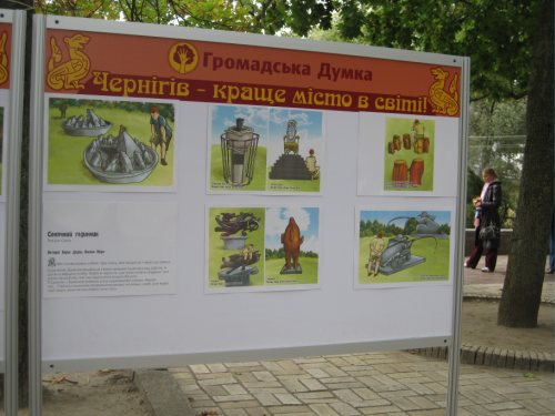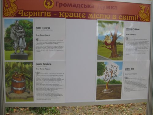 При прогулке по Валу, первыми бросились в глаза работы лауреатов проекта "Зроби Чернігів кращим в світі”. Каждый автор, был индивидуален, и по-своему видел символ нашего города.