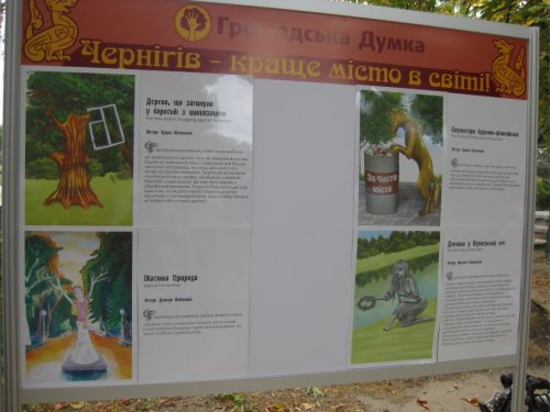 Лично мне больше всего понравилась скульптура «Соловей-Разбойник» – яркий, цветной, сказочный персонаж. Автор рекомендует посадить Соловья-Разбойника на дерево при въезде в Чернигов. Именно с этого места и может начаться экскурсия по Древнему городу.