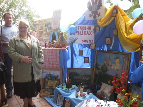 Валентина Ярмоленко рассказала о том, что перед тем, как их школа составила композицию «Праздничный вернисаж», они сначала провели некий отбор среди работ своих учеников, и выбрали самые лучшие. И лишь потом, начали компоновать сюжет. По словам Валентины Ярмоленко, в этом году выставка имела очень много тематик, но они решили сделать композицию более праздничную, которая символизирует то, что радость приходит всегда после любого трудного периода. Также в композиции были представлены вышивки их учеников и учительницы Ларисы Леонидовны. Работы из теста, картины – все это тоже работы учеников 21 школы. В данном сюжете привлекли внимание три большие картины, которые находились в центре композиции. По словам учительницы истории, это работы их учителя, заслуженного художника Украины, члена союзов художников Украины, Федора Кравчука.