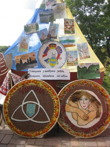 Далее, мы видим композиции, которые были представлены школами нашего города. В выставке приняли участие практически все школы нашего города. Каждая из них составила композицию, на определенную тематику. Кто-то затронул тему Великой Отечественной войны, кто-то порадовал композициями из цветов, а кто-то отразил в своей работе национальный, украинский дух. Несмотря на столь разный выбор тем, все композиции выглядели очень достойно и символизировали наш город.
