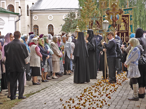 К моменту переноса нетленных мощей чудотворца, к монастырю прибыли священники и верующие из разных церквей Чернигова. По всему маршруту, за нетленными мощами, следовало огромное количество верующих.