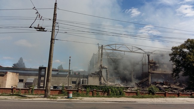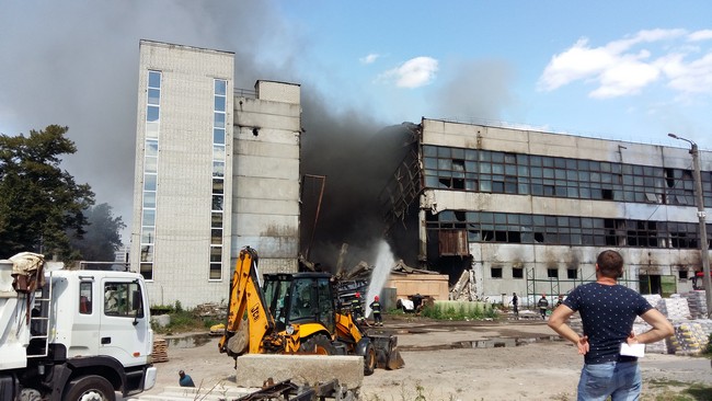 - Огонь начался на складе отходов, куда мы привозили поддоны и упаковку, там было много бумаги и пластика. Сама фабрика находится левее по улице Ивана Мазепы и не пострадала. Говорят, что на складе были металлосварочные работы, мы на фабрике около 10 часов утра почувствовали дым, тут же нам было сказано покинуть здание. Сначала пожар тушила одна машина, потом подъехали еще, всего было примерно 6 машин. Когда обрушилась первая стена, которая видна с улицы, около нее стояло несколько пожарных, надеемся, что с ними все в порядке. Минут через пять обрушилась стена в глубине здания, и скоро пожар распространился на все многоэтажное здание. Ждем, чем это все закончится.
