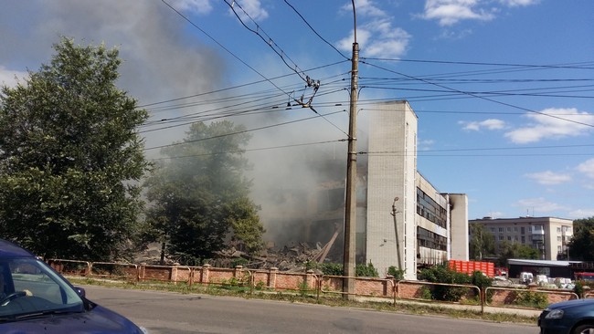 Ближе к обеду 3 августа в центре города чувствовался запах гари и был перекрыт проезд общественного транспорта. Троллейбус № 8 поворачивал на улицу Гетьмана Полуботка и шел по Пятницкой на улицу Кирпоноса. Причиной такого особого состояния в городе был пожар большого здания на углу улиц Толстого и Ивана Мазепы. Как ранее сообщал наш сайт, на ул.Ивана Мазепы, 62 в находятся помещения швейного предприятия ООО «Новофил» с итальянскими инвестициями.