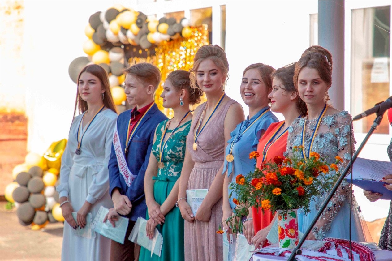 У п'ятницю, 31 липня, в Менській гімназії відбулося свято випускників 2020 року. Сценарій свята, зважаючи на карантинні обмеження, дещо змінили. Вручення медалей, атестатів зрілості, вітання батьків й напутні слова директорки і вчителів-наставників – все це відбулося на подвір'ї перед гімназією.