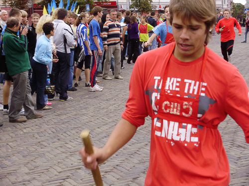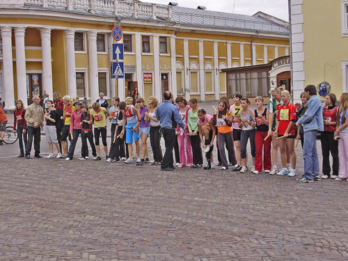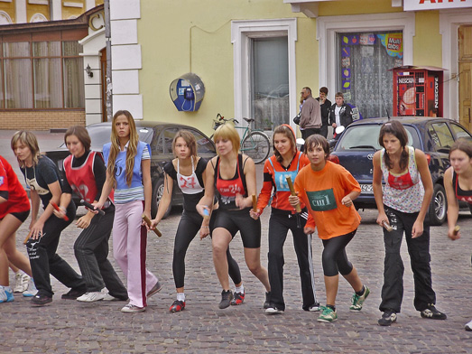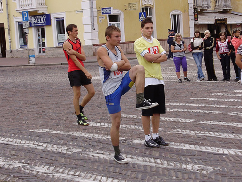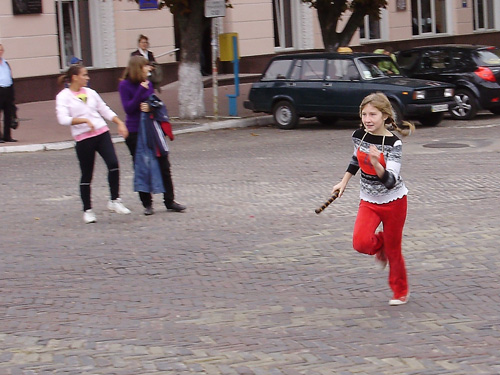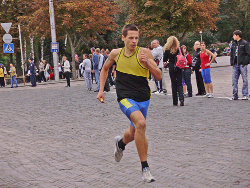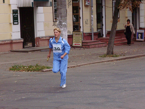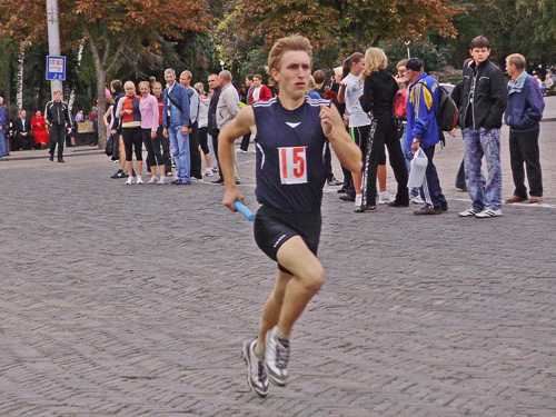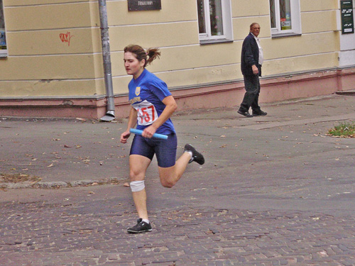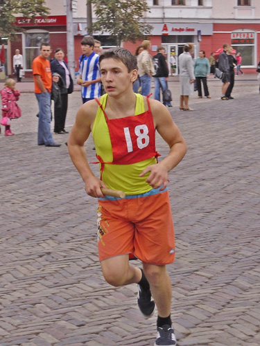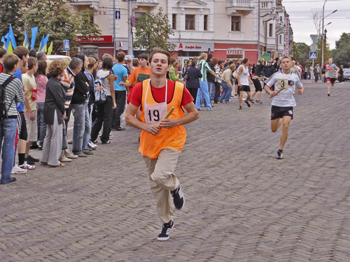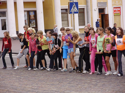 Все готовились к легкоатлетическим стартам эстафеты по улицам нашего города. Дистанция была разбита на 10 этапов, команды состояли из пяти девушек и пяти юношей.