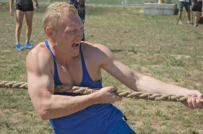 А начались соревнования с самого зрелищного и эмоционального вида – перетягивание каната. Борьба велась до двух побед. Здесь сильнейшей была команда ФСО «Динамо», которая в финале победила команду «Пивнич». Третье место у команды «Альфа-Банк».