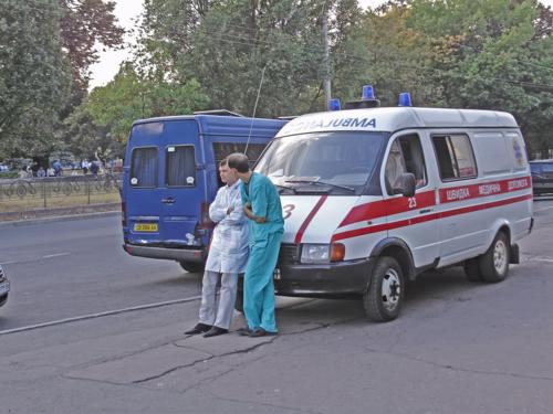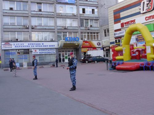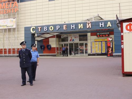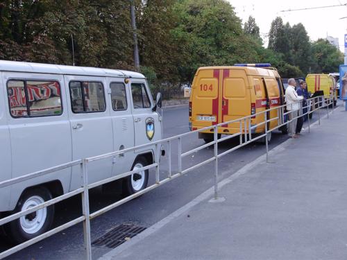 Здание торгового центра было оцеплено нарядами МЧС и милиции. Тут же дежурили машины скорой помощи и пожарные.