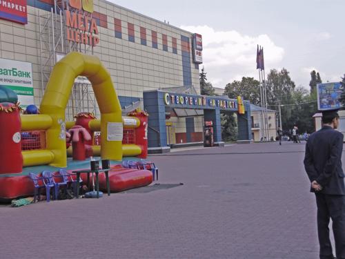 Пустынно было сегодня днем возле Мегацентра. Стихли детские голоса на аттракционе возле торгового центра. Опустели автомобильные парковочные площадки. Желающие попасть в Мегацентр, получали вежливый запрет от работников милиции.