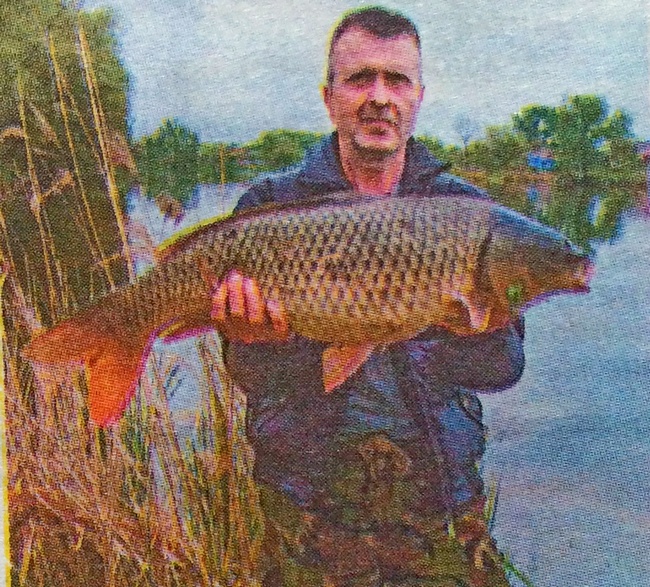 — Я военный пенсионер, живу во Львове. Но каждое лето приезжаю на свою малую родину - в Ичню. Люблю рыбачить. С мая идо конца октября - самое благоприятное время для ловли карпа. В этот период он близко подходит к берегу на прогретые участки, активно питается. Рыбалка летом всегда успешна, -говорит Виктор Павлович. - 1 августа в 6 утра я пришел к водоему, где водятся карпы. Принес поплавочную удочку и наживку (сваренное зерно кукурузы). Несколько минут ходил вдоль ('брега, наблюдал за водной гладью. И наконец на мелководье заметил небольшие пузырьки: значит, карп активно погружался в ил, ища себе добычу. Я закинул удочку и стал ждать. Но карп — очень осторожная и хитрая рыба. Он попался на мой крючок только через 2 чаоа. Был очень большой. Я позвал других рыбаков, чтобы показать им улов. Сфотографировался с карпом, а дома взвесил его на электронных весах.