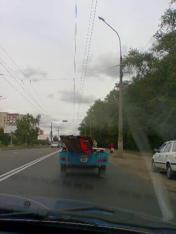 Об экстравагантном: всем известно, что негабаритные грузы нужно обозначать красными флажками. А вот так участник дорожного движения отметил свой груз – красным бюстгальтером! Жаль, не заметили, за рулем ОН или ОНА...