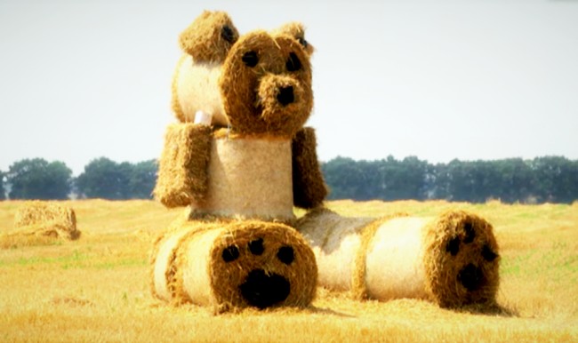 Тепер, щоб сфотографуватися з «солом’яним» ведмедем, біля поля вишиковуються черги.