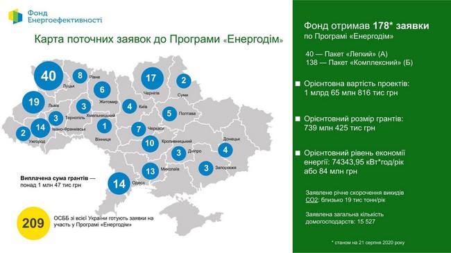Варто зазначити, що на сьогоднішній день в Чернігові зареєстровано близько 180 ОСББ. На програму Енергодім подалися лише сім будинків з Чернігова. Та місцеві ОСББ не дуже активні щодо участі. Хоча перші 500 заявок до Фонду отримають компенсацію на термомодернізацію до 70%. Станом на 21 серпня з усієї України до Фонду Енергоефективності подано 178 заявок.