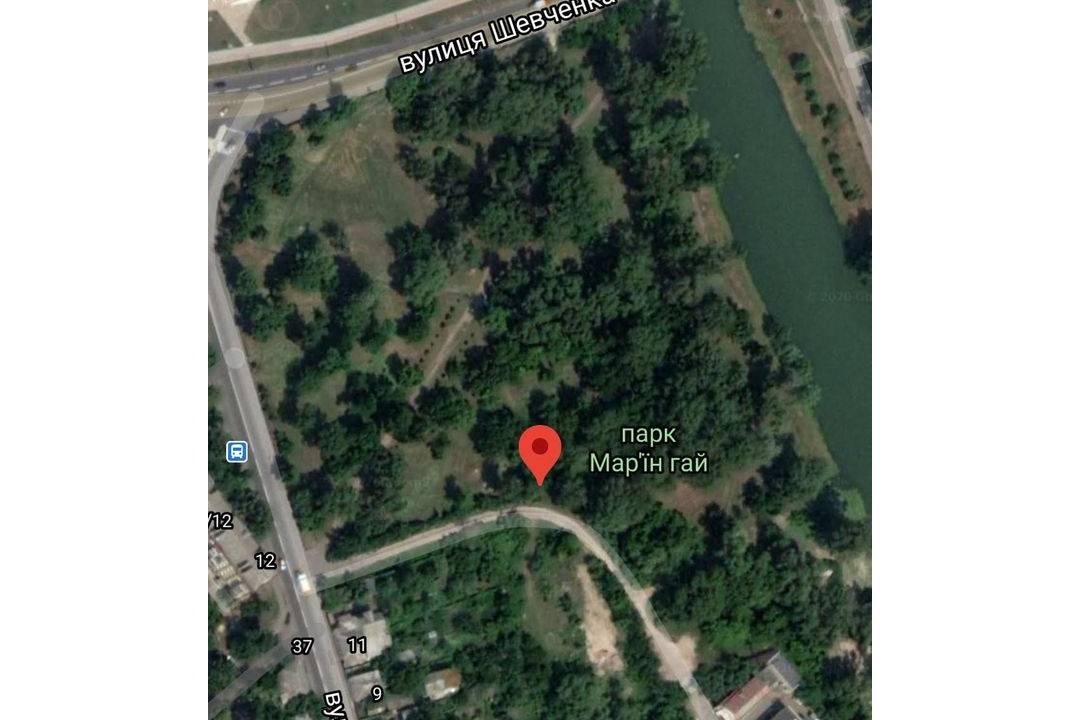 7. Мар’їн гай, з боку річки Стрижень, на ділянці вільній від дитячих та спортивних майданчиків та поза прибережною смугою.