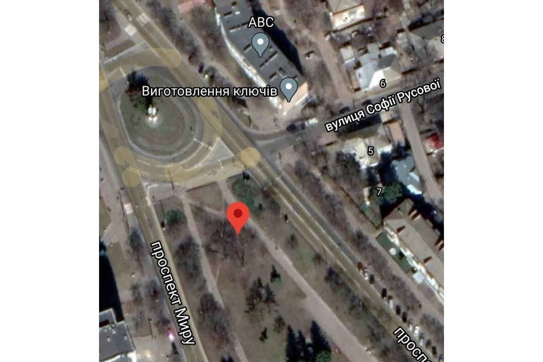4. Центр міста, в кінці бульвару по проспекту Миру, біля площі Дружби народів (біля перехрестя просп. Миру та вул. С. Русової).