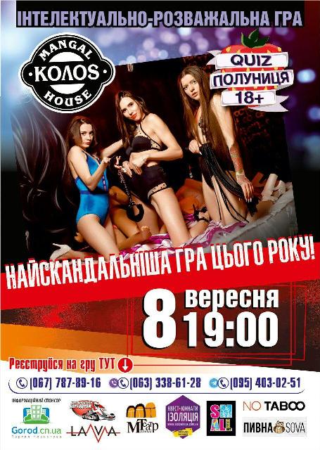 💥💥💥 8 вересня в закладі Мангал Хаус Колос відбудеться QUIZ-ПОЛУНИЦЯ 18+🍓🍓🍓 💥💥💥