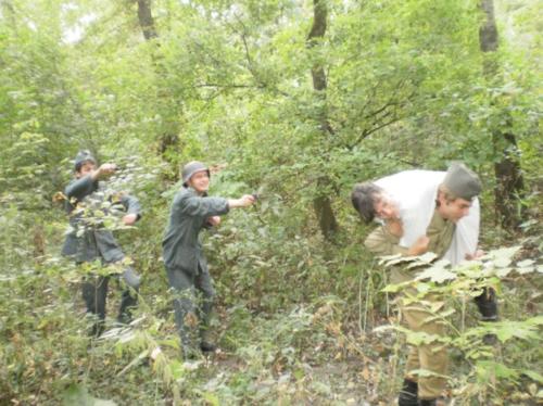 Вузька лісова доріжка привела нас до поста німецьких солдат, ми ледь дихали, небезпека була на відстані лише декількох метрів, здавалося вони нас не бачать, наші серця билися надто гучно… попереду були пастки… ми вчасно побачили натягнуті мотузки … далі ми вже повзли по землі, обережно ковтаючи пил. Аж раптом командир нашого загону задів один з дзвіночків і ми були помічені ворогами... В нашу адресу лунали вигуки незнайомою мовою, вони наближались… ми тікали, але вони були вправніші за нас, в нас стріляли, кидали гранати … ми потрапили в полон…