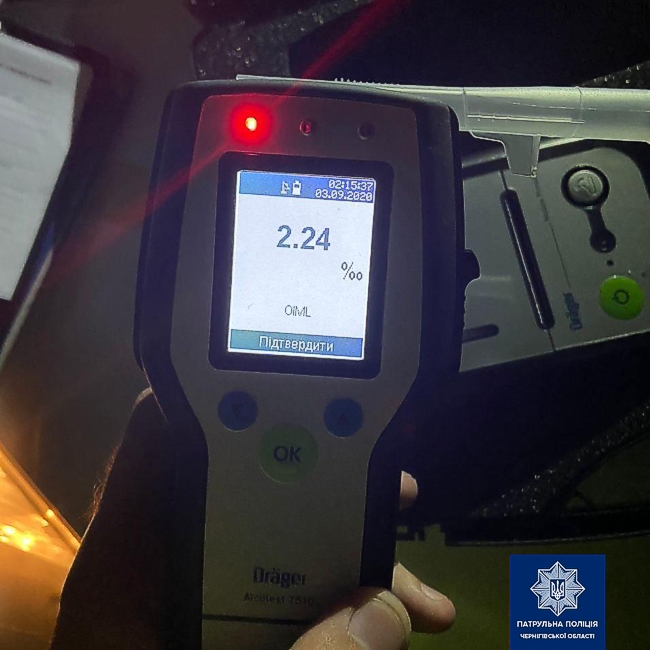 Вночі 3 вересня у Чернігові патрульні виявили водійку, рівень алкогольного сп’яніння якої перевищував норму в 11 разів. Про це Суспільному повідомив пресофіцер патрульної поліції області Віталій Копистко.
