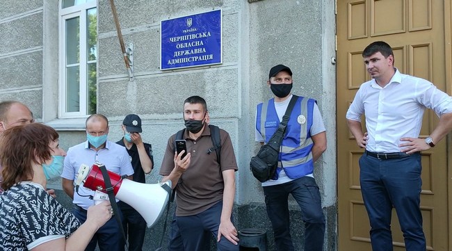 Зрозумівши, що діалогу не буде, вже в понеділок робітники вийшли під стіни Чернігівської облдержадміністрації. На заклик про підтримку відгукнулись дві Всеукраїнські профспілки та нардеп Поляков, який також вивів своїх партійців. Через це в Чернігівській ОДА розповсюдили інформацію про начебто політичний характер акції. Виглядало воно збоку дійсно як політична акція, от тільки торфовидобувники неодноразово наголошували на тому, що зверталися про підтримку до всіх, а присутність на їхній акції політиків – це спосіб додати дієвості та результативності заходу. Нагадаємо, це вже втретє з початку року працівники Смолинського торфозаводу пікетують ОДА. Однак уперше з часів Майдану до пікетувальників не просто не вийшли, а закрили на замок приміщення, обгородившись кордоном силовиків. Дарма, що під дверима стояв цілий нардеп! Одного з заступників Прокопенка бачили, коли той покидав приміщення ОДА через «чорний» вхід.