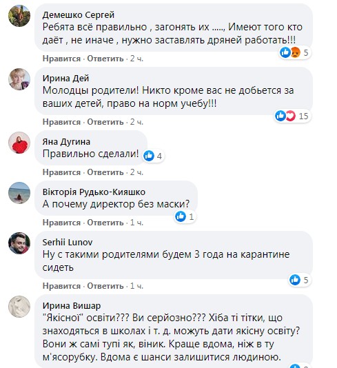 А родители детей, которые ходят в школу №19 уже из чатов перешли к действию и свои возмущения нынешней ситуации озвучили директору Шелупец Людмиле Григорьевне, записали это на видео и выложили на фейсбук.