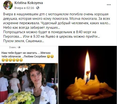 - На похоронах я узнала, что она помогала многим людям, о которых я даже не знала. Мир стал без нее хуже, она была очень добрым и светлым человеком, таких очень мало можно встретить.