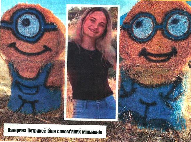 — Ця краса біля нашого будинку. Міньйонів зробив мій брат, біля них ще й медведик є, — розповідає Катерина Петрикей, студентка, — Сашко робив зі своєї соломи, розфарбовував фарбою за допомогою пульверизатора. Це була його ідея. Використав два тюки соломи на одного міньйона. Заготовляли самі. У нас корова. Робив брат за допомогою трактора з навантажувачем.