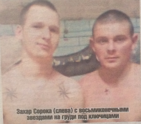 Заходит Зоха часто. Публикует грустные и не очень посты. Среди прочего: «Как мало пройдено дорог, как много сделано ошибок», «Лучше быть простым тузом, чем козырной шестеркой», «Я вижу костры из книг, я слышу овчарок лай. Когда-нибудь я крикну «Sieg»**, а миллионы ответят— «Hail»***. На одном из фото Зохи (то ли нарисованы, то ли набиты) на груди две восьмиконечные звезды. В воровском мире они означают, что сидящий пользуется авторитетом.