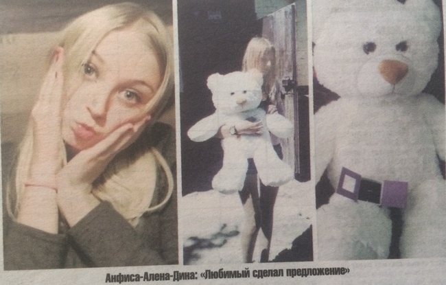На фото от 5 июля 2016 года у девушки в руках большой белый медведь. Рядом фото того же медведя и коробочки с небольшим аккуратным колечком.