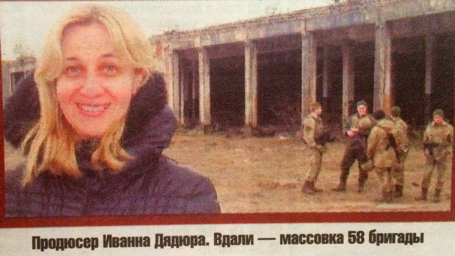 — Под Киевом мы построили декорации, там прошли все съемки в интерьерах, — рассказывает продюсер фильма 48-летняя Иванна Дярюга (вторая супруга Ахтема Сейтаблаева, первая была в Крыму). — В Чернигове и под мы полностью снимаем натуру, экстерьер* аэропорта (на аэродроме в Певцах). Сейчас снимаем Пески и дорогу на Донецкий аэропорт. Журналисты «ТСН», которые были в Песках, говорят, натура очень похожа. Массовка — солдаты срочной службы 58 мотопехотной бригады. Большое спасибо командиру Первой танковой бригады полковнику Сергею Маленко и начальнику Генштаба Виктору Муженко.