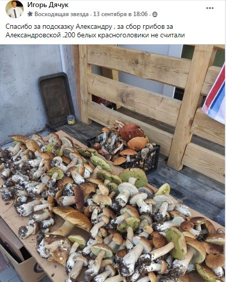 12 сентября Алексей Очеретько рассказал о том, что насобирал более 500 штук белых грибов в селе Александровка: "На фото первый заход, был ещё 1 полный и один мини заходите вокруг машины. Собирали с 7.30 до 15.00, Кто хочет проверить свои силы - велком!) Проезжаете Олешню, далее Александровка - едете до конца асфальта, сьезжаете правее по укатанной песчаной дороге. Там будет несколько дорог но по-сути они все потом сходятся. Вобщем съехали: едете дальше, слева ещё метров 300 будет видно дома, по этой дороге введёте на дорогу посыпанную мелким щебнем (перед ней справа будет самодельный знак "главная дорога", а слева деревянный гриб) если вы это видите значит вы на верном пути:) Далее около 1-2 км едете по этой "щебенчатой" дороге пока не увидите с двух сторон (стоят напротив друг друга, одна слева дороги, вторая справа) две небольшие синие таблички с надписью "газовая магистраль" или типа того. Вокурат возле табличек будет поворот налево. Сворачиваете, и едете по узенькой дорожке (машина пролазит - проверенно) вглубь леса метров 200 пока не упретесь в ЛЭП. Это и есть наша точка. Все грибы были найдены в радиусе 500 метров от этой точки, но полазить придется. Когда уезжали грибов ещё оставалось валом, поджимало время. Удачи!", - пишет Александр. По его стопам проехали черниговцы и насобирали сотни белых грибов, выкладывали их в комментариях.