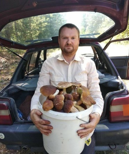 Юрий Анатольевич Джола предпочитает собирать грибы в темное время суток, подсвечивая их фонариком. На фото его улов: