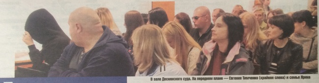 Родители обвиняемых активно общались между собой. От камер все отворачивались. А Евгения Тимченко не снимала капюшон, лицо все время прикрывала черной папкой.