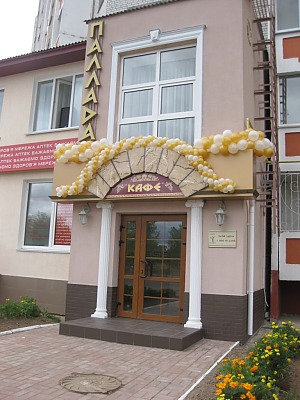 На первом этаже кафе «Паллада» разместился барный зал. В спокойной уютной обстановке здесь можно выпить кофе или пиво. Одну из стен украшает роспись, которая выглядит как настоящая фреска. Она выполнена по специальной технологии при помощи воска. На втором этаже разместились два небольших зала, которые при необходимости превращаются в банкетный зал и танцевальную площадку. Столы здесь сервированы по-ресторанному. Интерьер украшают греческие «развалины», а также обворожительный морской пейзаж. В таком стильном месте приятно пообедать с друзьями или деловыми партнерами, отметить юбилей, свадьбу или корпоративный праздник.