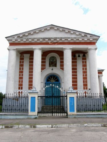 Единственный храм Любеча - Преображенская церковь, построенная в 19 в., была усыпальницей представителей дворянского рода Милорадовичей. Внешний вид ее в стиле классицизма действительно напоминает античный храм или мавзолей.