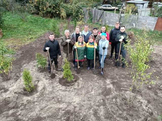 На Єськова вже о 8-й ранку мешканці спільно з працівниками «Зеленбуду» готувалися до озеленення вулиці.